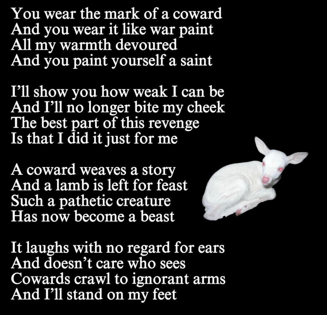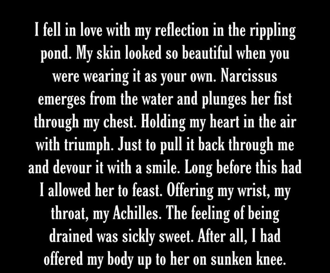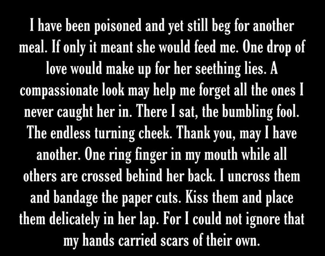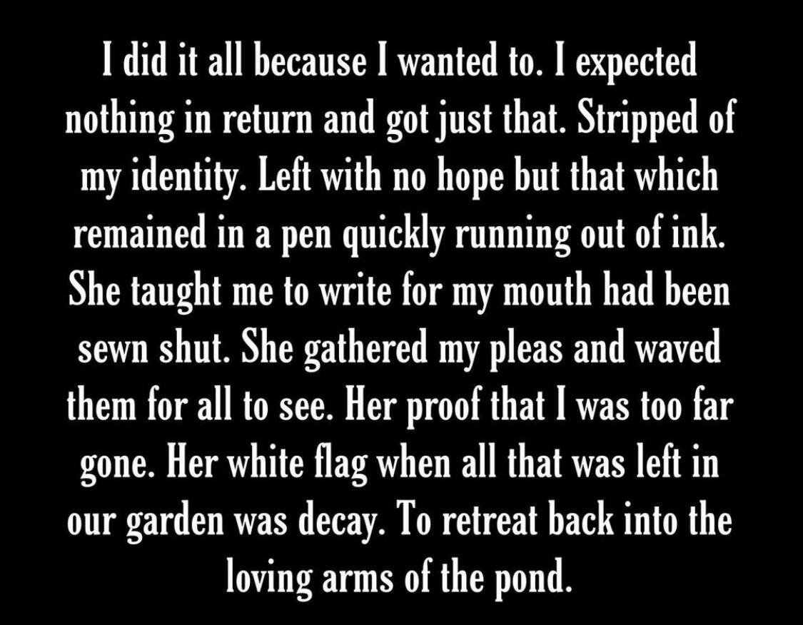 And found myself in the decaying forest once againI ran my fingers along the walls of my prison