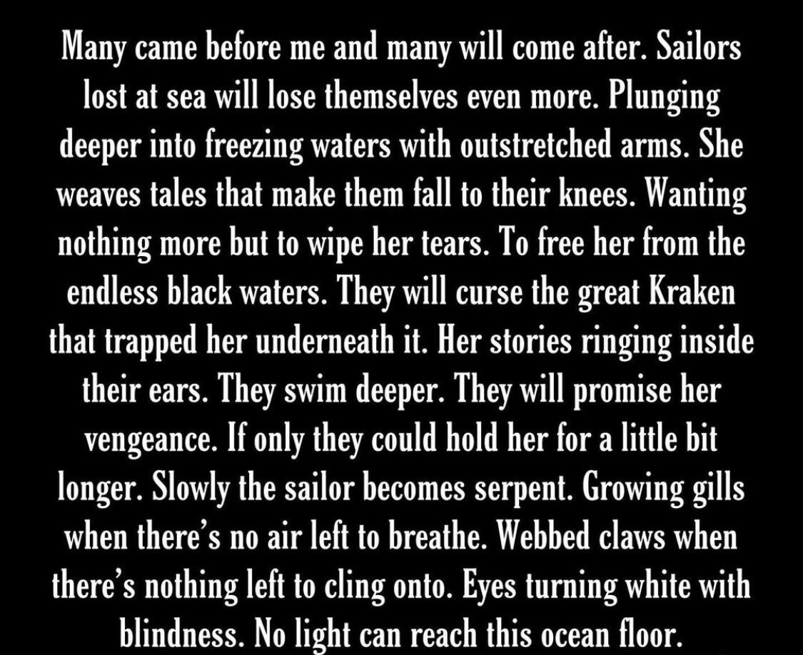 To tell me to savor the mildewSo when the beautiful creature entered my prison