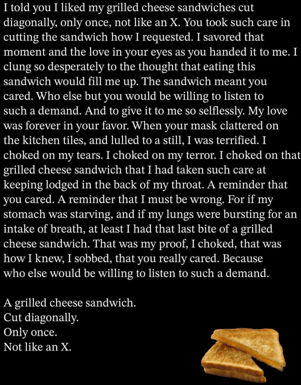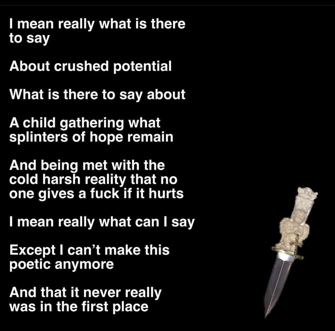 So I didn’t have to look at the knifeI praised you for the strength it must’ve taken