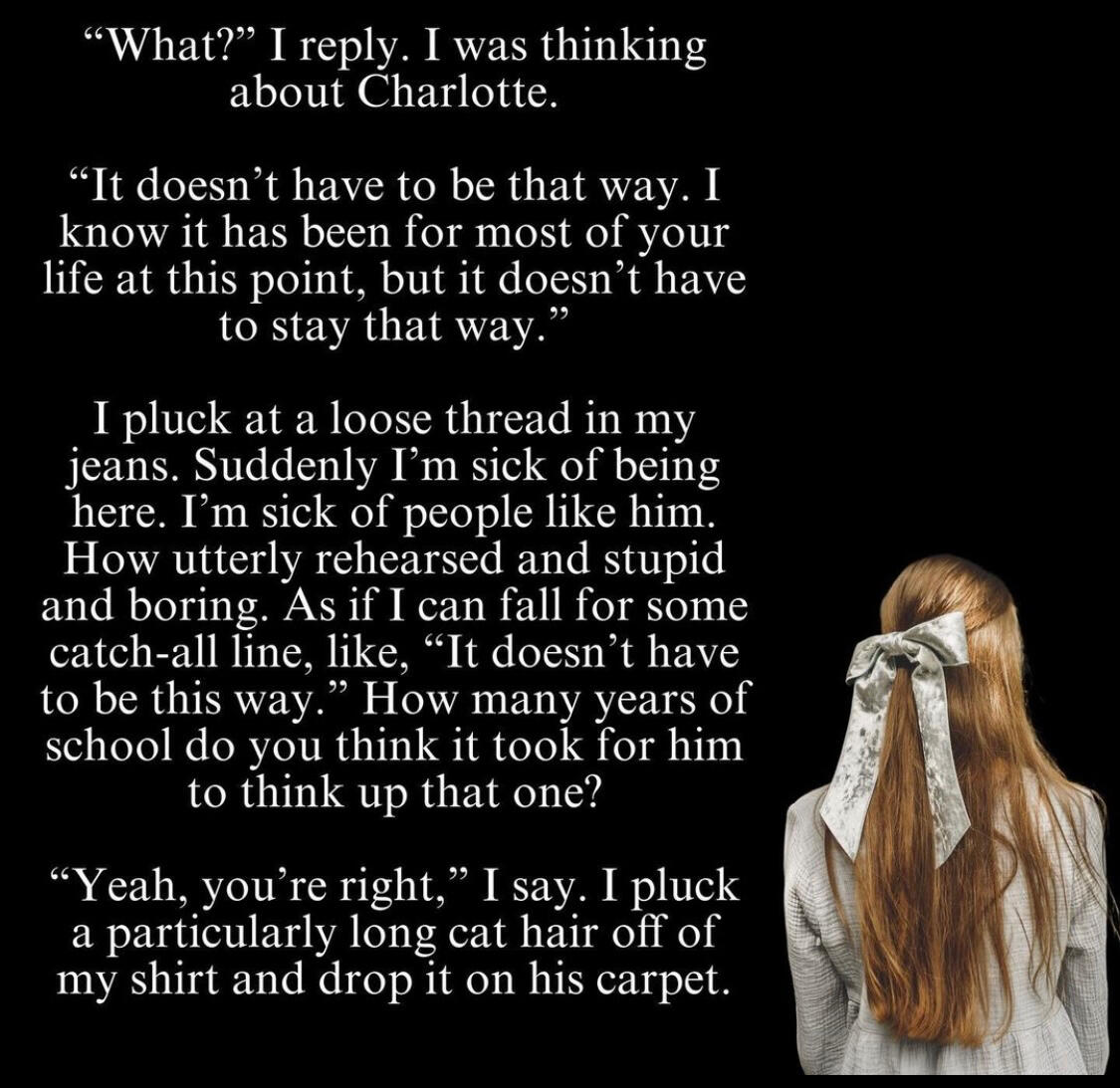 To tell me to savor the mildewSo when the beautiful creature entered my prison