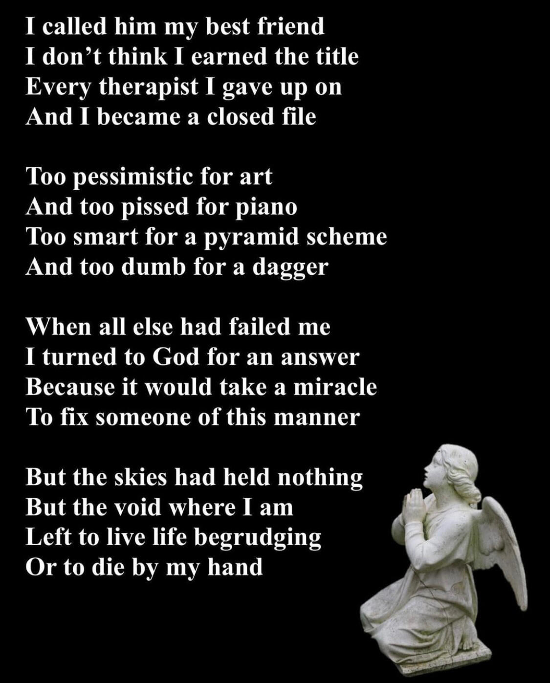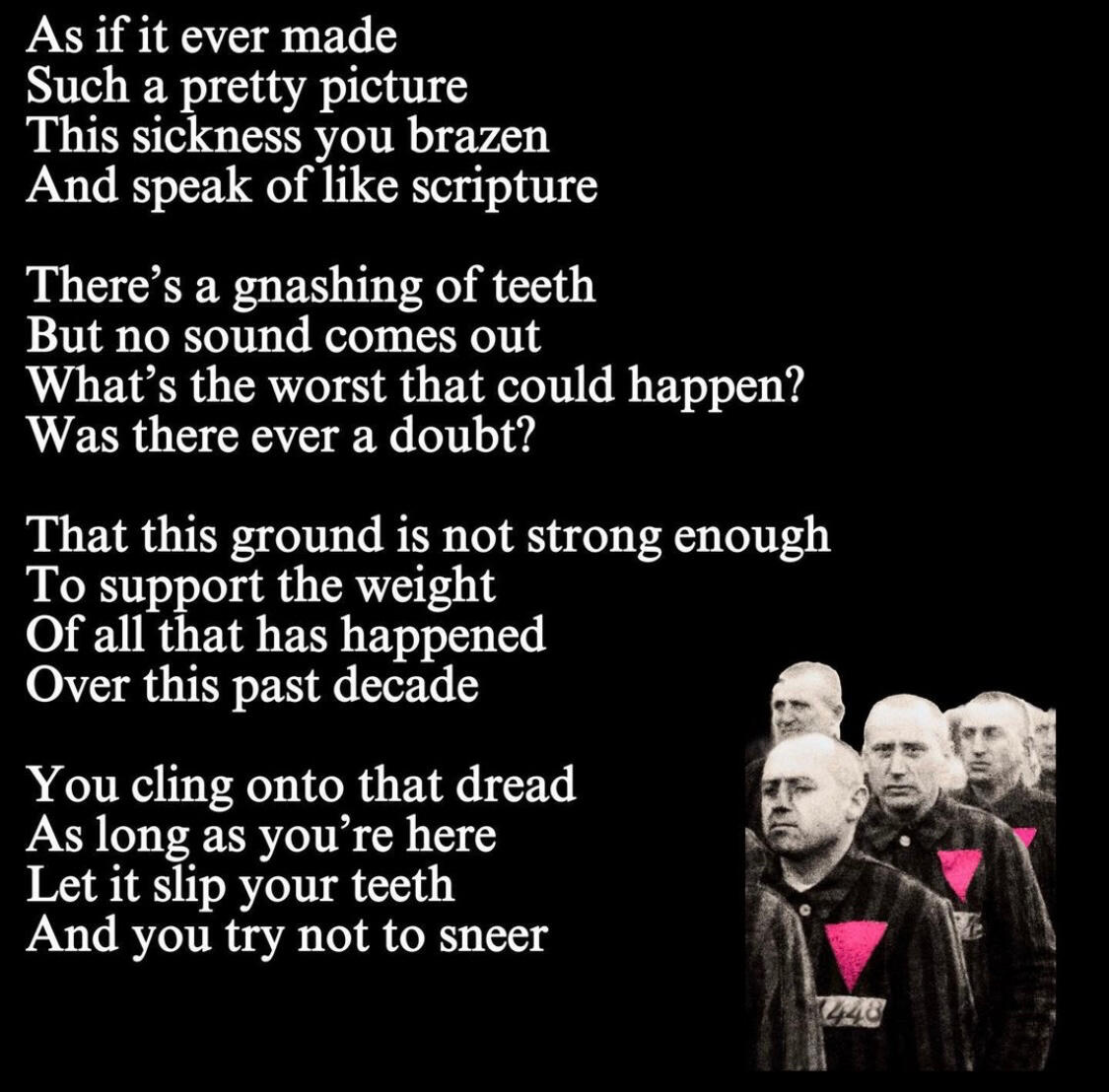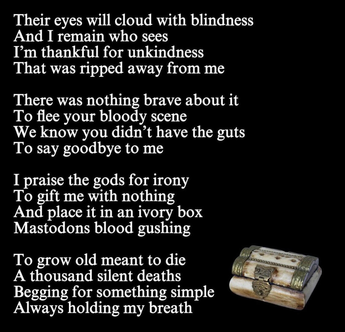 And found myself in the decaying forest once againI ran my fingers along the walls of my prison
